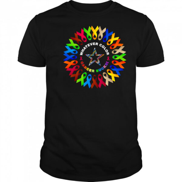 Empower your voice and make a difference with the Whatever color cancer sucks Dallas Cowboys shirt. By wearing this shirt, you’re not only expressing your love for the Cowboys but also standing up against the devastation of cancer. Every purchase supports cancer research and awareness initiatives, contributing to a brighter future for those fighting the battle. Join the movement, raise awareness, and show your support in style. Don’t miss the opportunity to be a part of something bigger than the game. Get your Whatever color cancer sucks Dallas Cowboys shirt today and let your passion shine while making a meaningful impact. Together, we can tackle cancer and cheer on our team with pride!