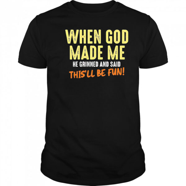 When God made me he grinned and said this’ll be fun letter shirt, hoodie, sweater, longsleeve and ladies t-shirt
